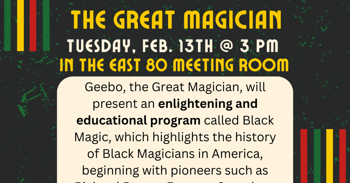 This enchanting presentation on Tuesday, February 13th at 3 p.m. is a highlight of our Black History Month program, bringing to the forefront captivating stories and magical feats of trailblazing performers.