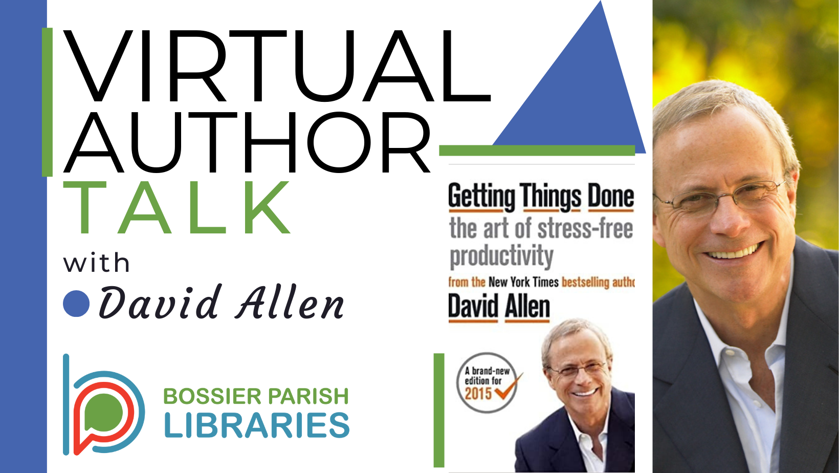 Allen’s New York Times bestselling book, Getting Things Done: The Art of Stress-Free Productivity, has sold millions of copies and has been published in thirty languages, and the “GTD” methodology it describes has become a global phenomenon, being taught by training companies in more than ninety countries. David Allen’s GTD Methodology has shown millions how to transform a fast-paced, overwhelming, overcommitted life into one that is balanced, integrated, relaxed, and has more successful outcomes. GTD’s broad appeal is based on the fact that it applies from the boardroom to the living room to the classroom. It is hailed as “life-changing” by students, busy parents, entrepreneurs, and corporate executives. You can start “Getting Things Done” today and get advice from the author himself with a Q&A following the talk!