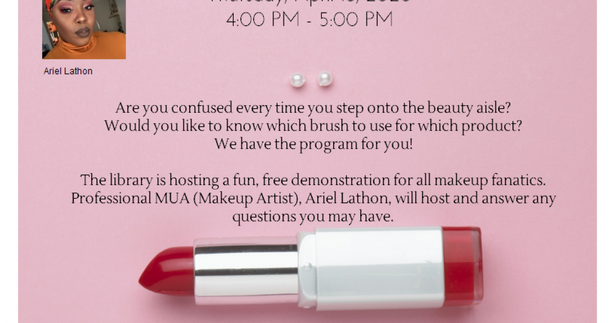 The library is hosting a fun, free demonstration for all makeup fanatics. Professional MUA (Makeup Artist), Ariel Lathon, will host and answer any questions you may have.