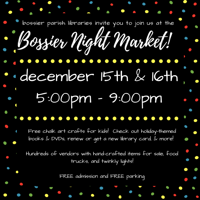Join us at the Bossier Night Market (located in the South Parking Lot of Pierre-Bossier Mall)