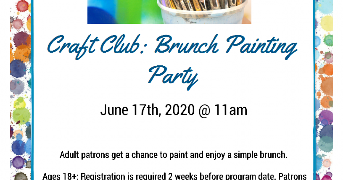 Adult patrons get a chance to paint and enjoy a simple brunch. Registration is required two weeks before program date. Patrons will be called the day before program date for confirmation. Failure to confirm will result in cancellation.
