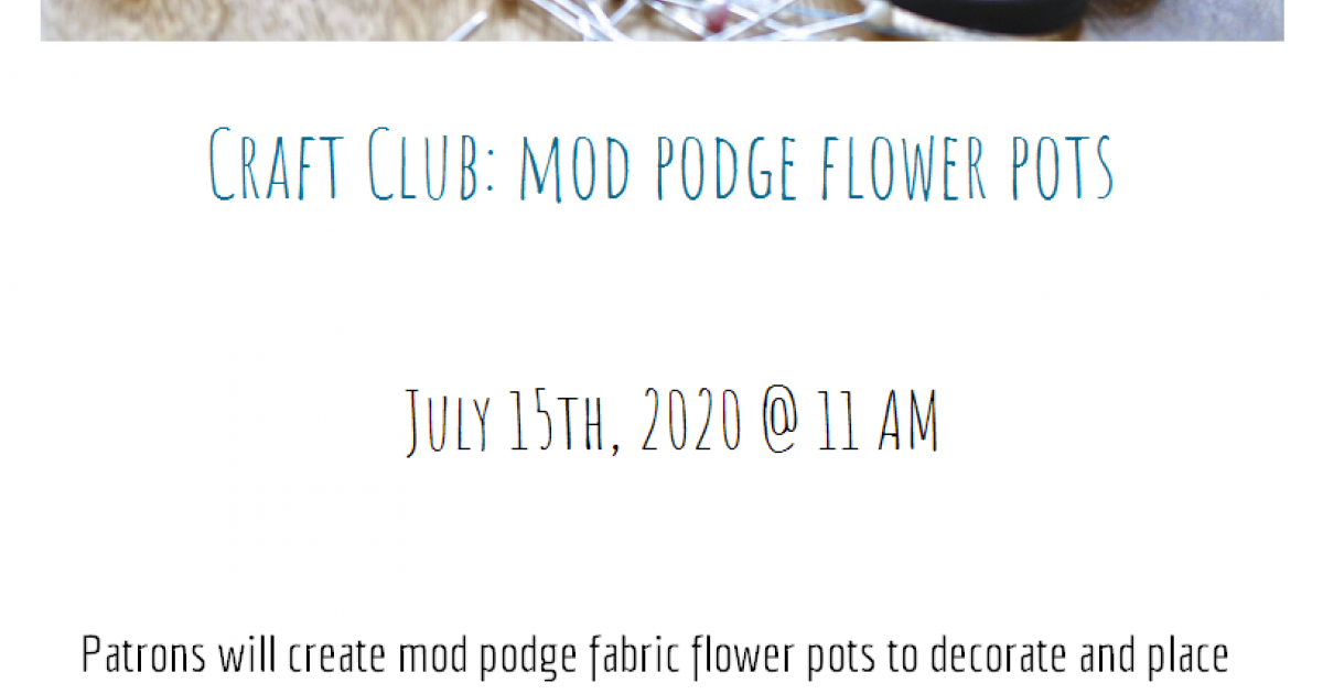 Patrons will create mod podge fabric flower pots to decorate and place throughout their home