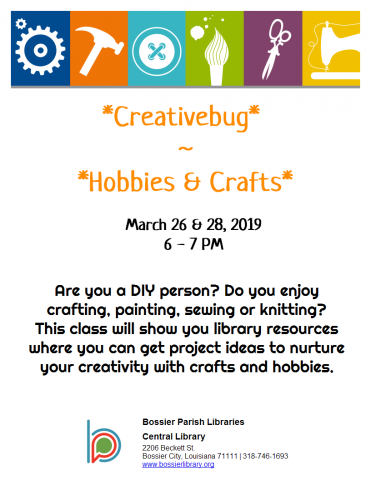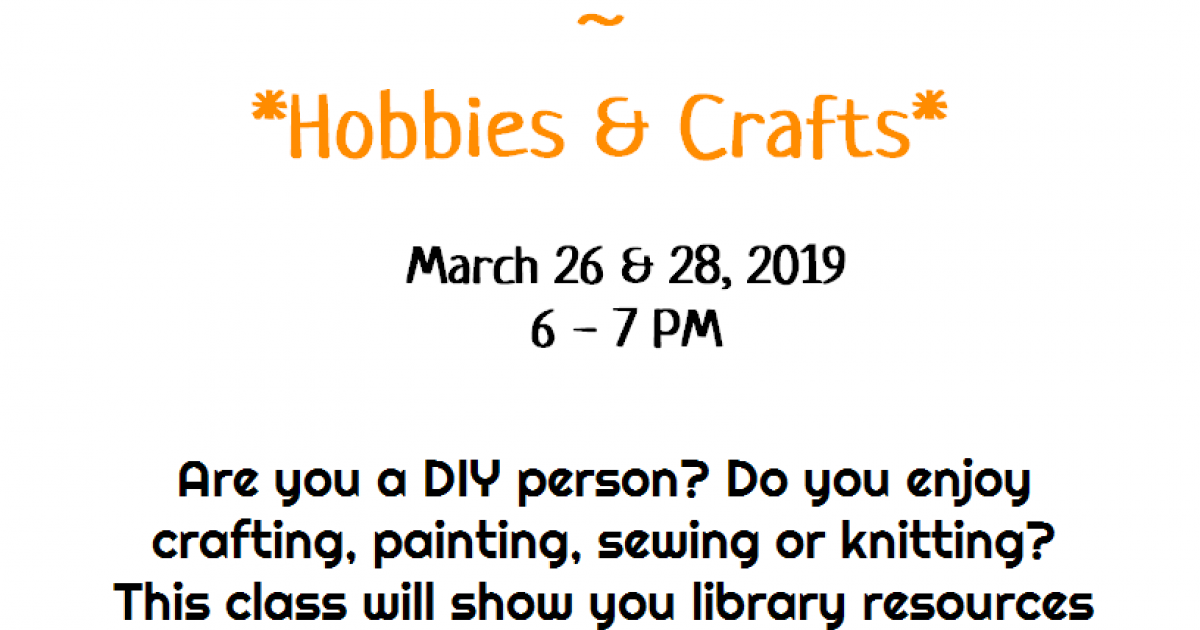Are you a DIY person? Do you enjoy crafting, painting, sewing or knitting? This class will show you library resources where you can get project ideas to nurture your creativity with crafts and hobbies.