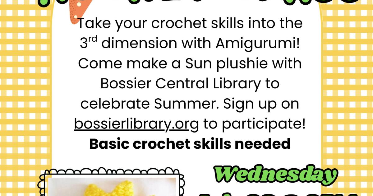 Take your crochet skills into the 3rd dimension with Amigurumi! Come make a stuffed sun to celebrate summer.