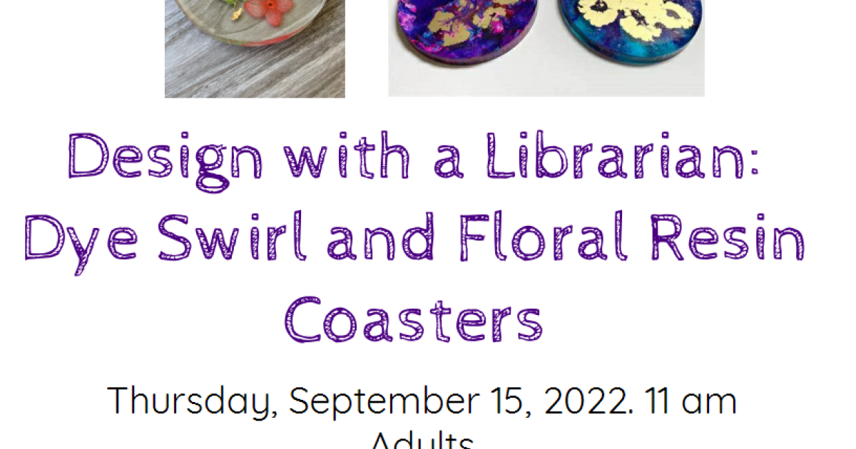 Join us for another program in our Design with a Librarian series. We will make dye swirl and floral designed coasters made from the organic substance, Resin.