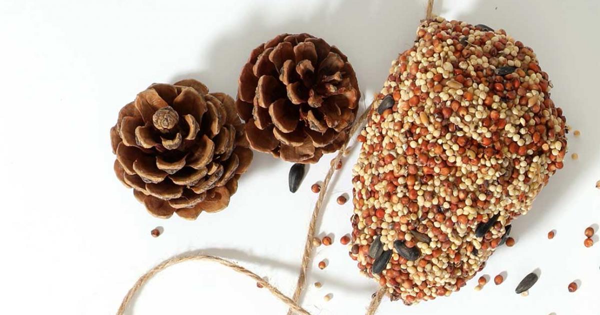 Patron will make their own birdfeeder using a pinecone, peanut butter and birdseeds.