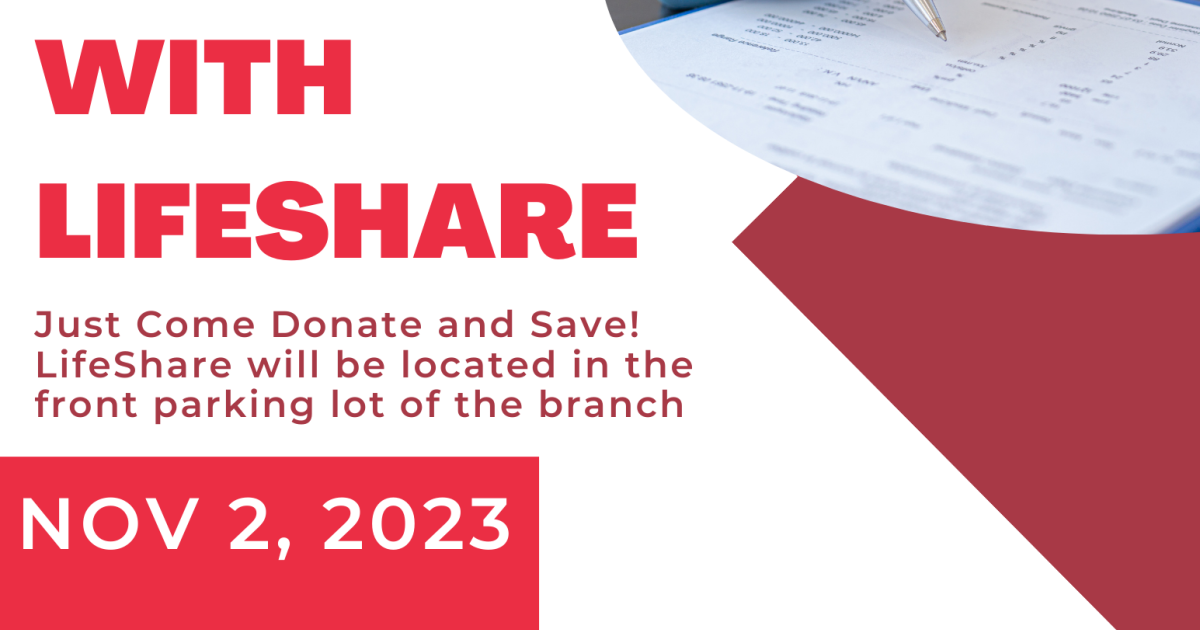 Donate and save a life! Their vehicle will be parked in front of the library.