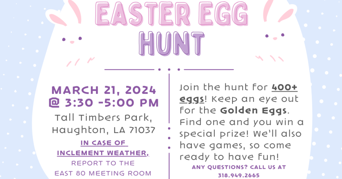 Get ready for an egg-citing adventure at our Easter Egg Hunt on Thursday, March, 21st at 3:30 p.m.! Join us for a fun-filled day of hunting, games, and prizes as we celebrate the arrival of spring together.