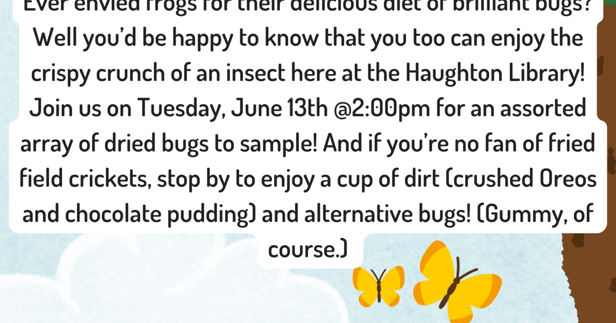 Flyer for bug eating program Tuesday June 13th at 2pm