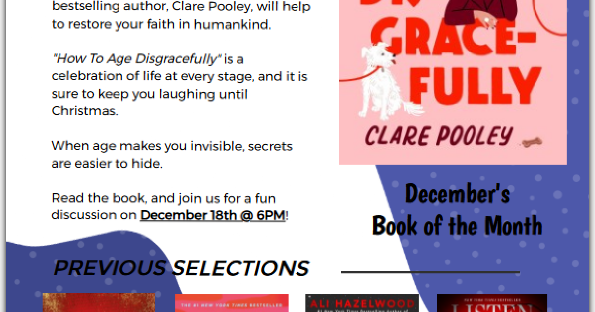 The Evening Book Club meets the last Wednesday of each month from 6:00 p.m to 6:45 p.m.