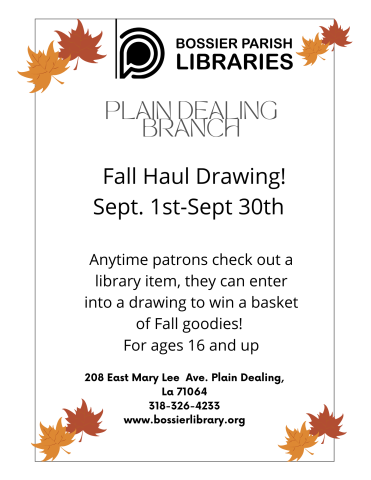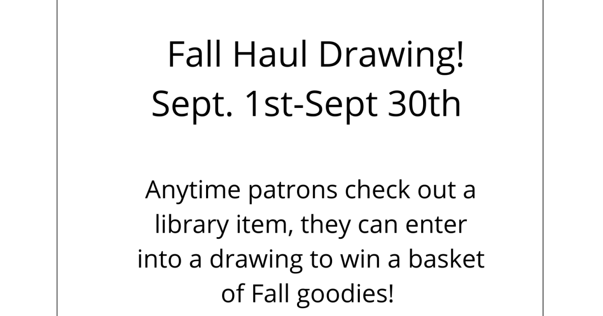 Anytime a patron checks out a library item, they can enter a drawing to win a Fall haul package!