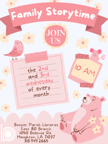 Join us for Family Story Time! We will have storytelling, songs, STEAM activities, crafts, movement, and more.