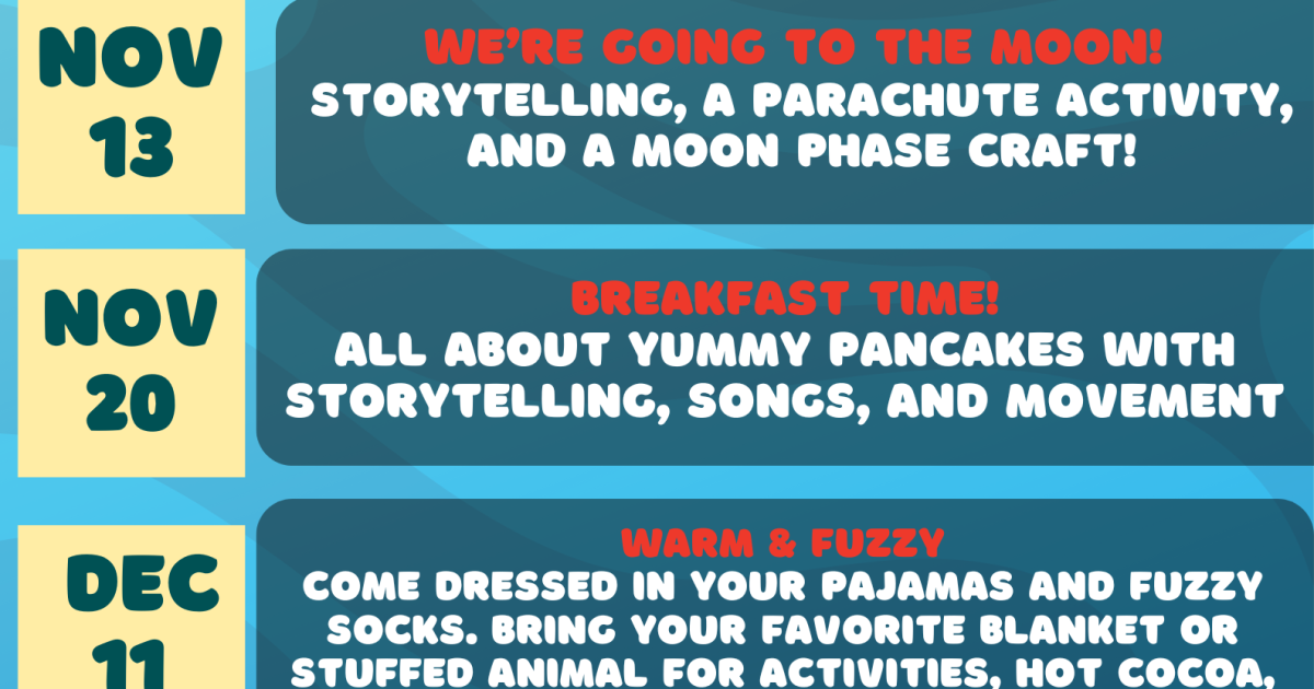 Bring your little ones along for an interactive session of stories, songs, movement, rhymes, activities, or crafts!