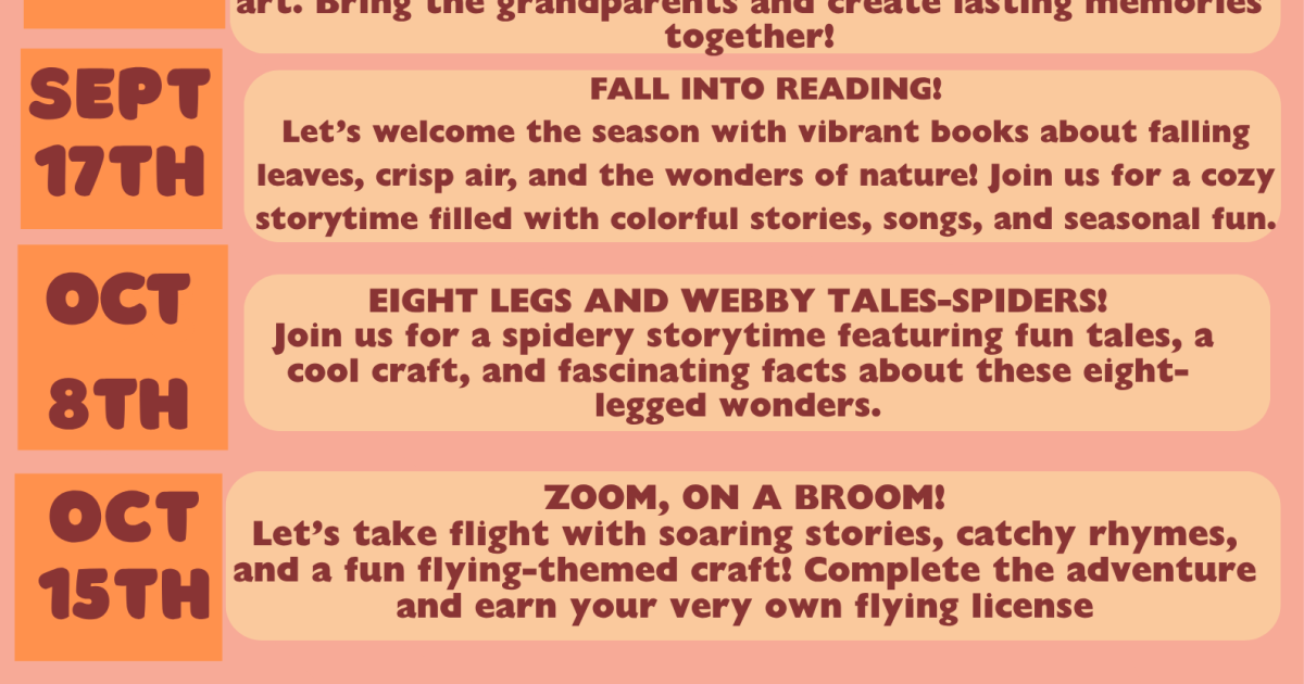 Bring your little ones along for an interactive session of stories, songs, movement, rhymes, activities, or crafts!