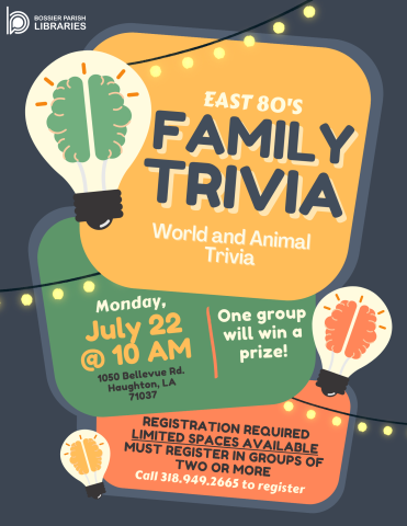 Come to the library and bring your family to the Family Trivia event to test your knowledge and win a few rounds at our fun and educational trivia game!
