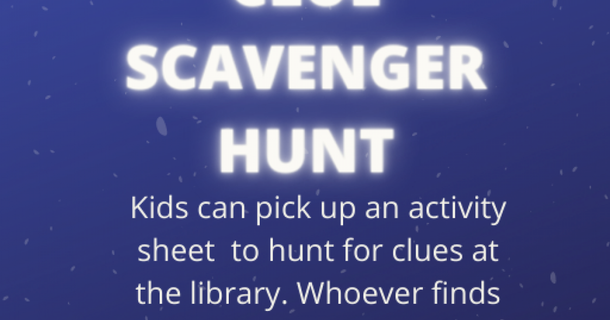 Kids can pick up an activity sheet to hunt for clues inside of the library. Whoever finds the most clues before the timer ends wins a prize. Ages 9-17.
