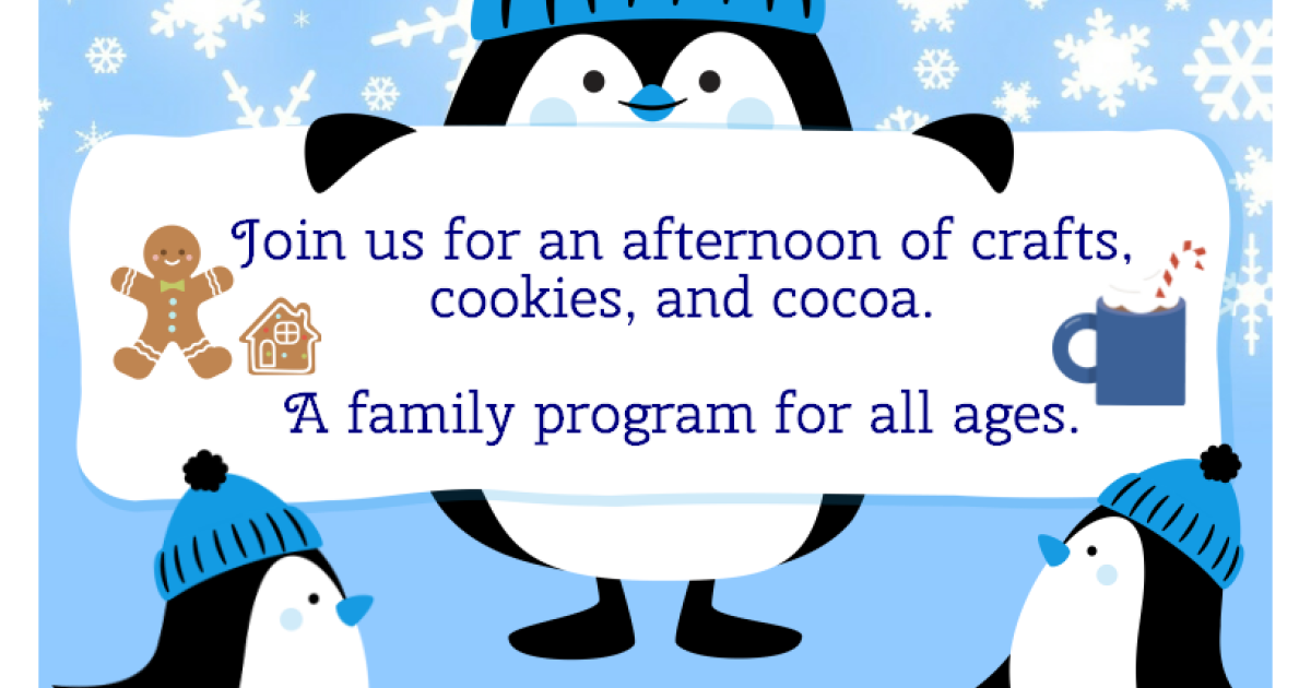 Join us for an afternoon of crafts, cookies, and cocoa! A family program for all ages.
