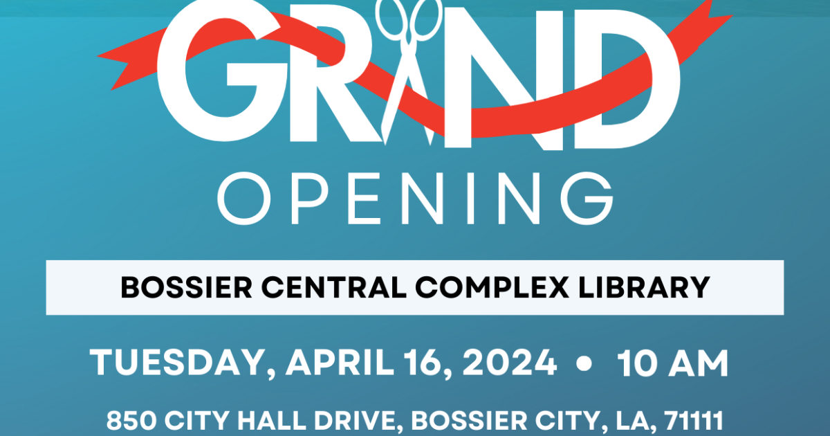 Join us for the Grand Opening of the Bossier Central Complex Library. The ribbon cutting ceremony starts at 10am with light refreshments to follow.