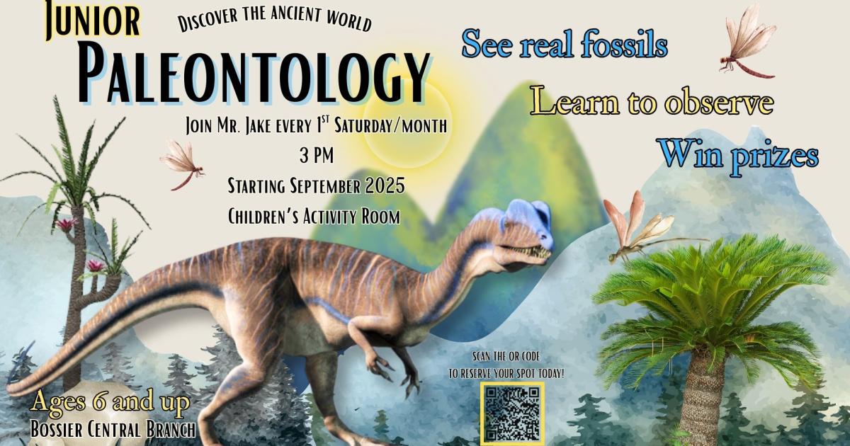 Junior Paleontologist Club every 1 Saturday of every month ages 6+. We’ll be digging up fossils, learning about many dinosaurs and their ways. There will be activities and prizes with your host Mr. Jake! REGISTRATION IS REQUIRED!