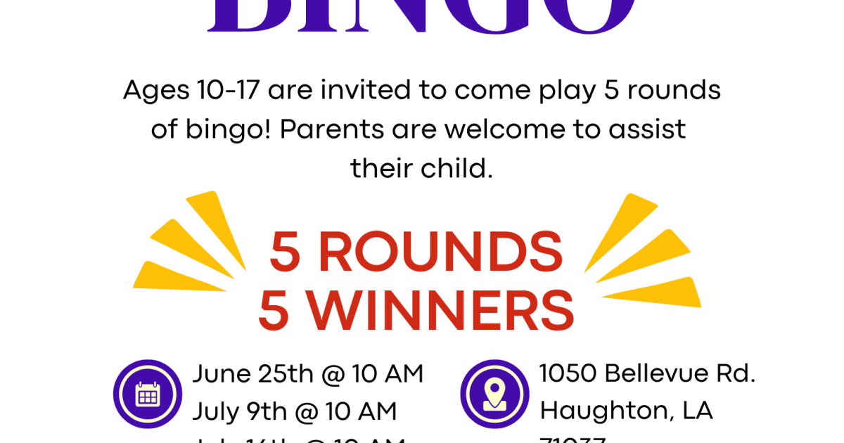 Tweens and teens ages 10-17 can play five rounds of Bingo during the Summer Experience program on June 25th, July 9th, and July 16th at 10 a.m. inside the East 80 Meeting Room.