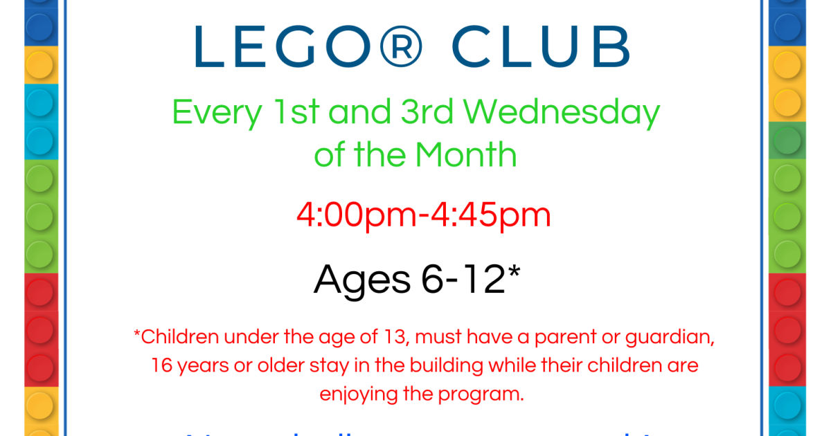 *Children under the age of 13, must have a parent or guardian, 16 years or older stay in the building while their children are enjoying the program.