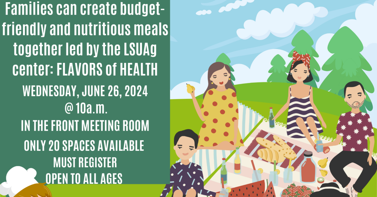 Participate in an amazing event hosted by the LSUAg Center Flavors of Health for a Family Cooking Camp!