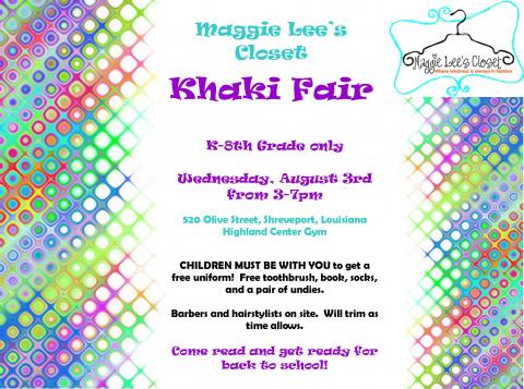 Join us at 520 Olive Street, Shreveport, Louisiana. K-8th Grade only. Children must be with you to get a free uniform! Free toothbrush, book, socks, and a pair of undies. Barbers and hair stylists on site offering trims as time allows.