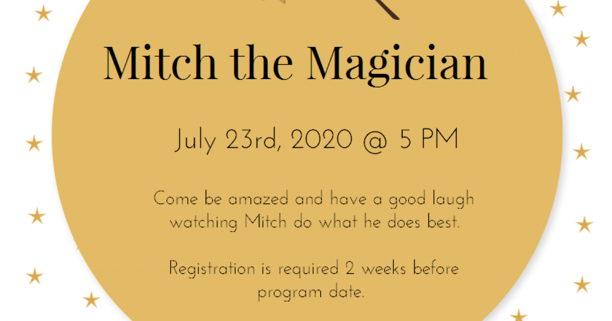 Come be amazed and have a good laugh watching Mitch do what he does best. Registration is required 2 weeks before program date.