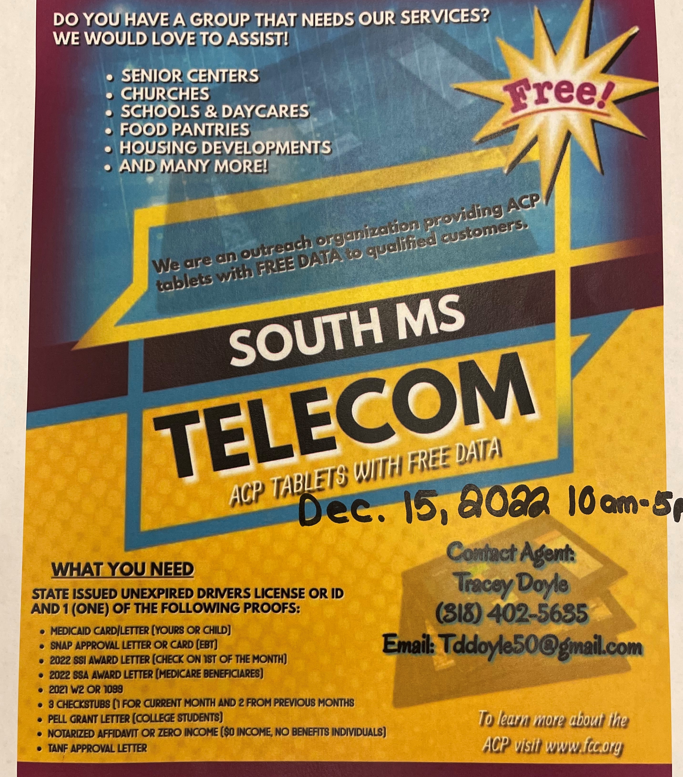 South MS Telecom will provide ACP Tablets with FREE DATA to qualified customers.