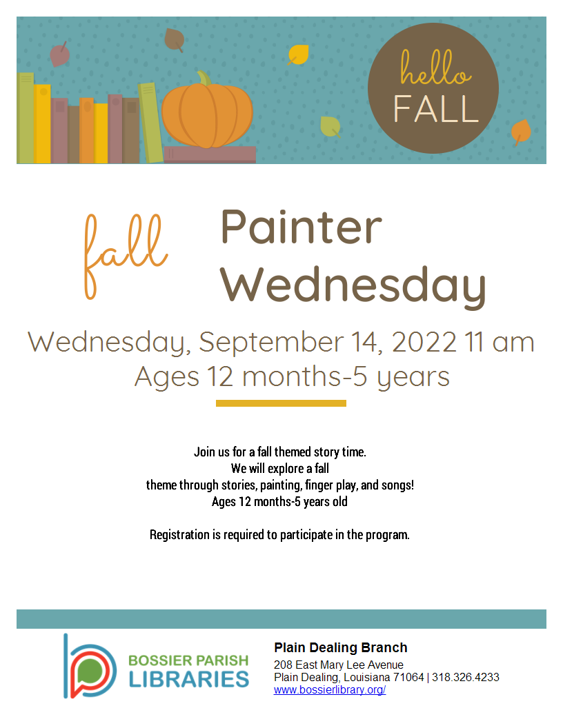 Join us for a Fall themed story time! We will have stories, songs, movement, and painting!