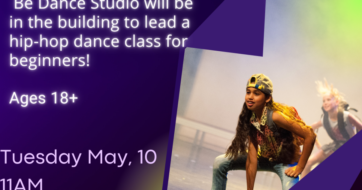Get ready to dance! Be Dance Studios will be in the building to instruct a hip-hop dance class for adults. Dancing is excellent for heart health, increases energy, and increases flexibility.