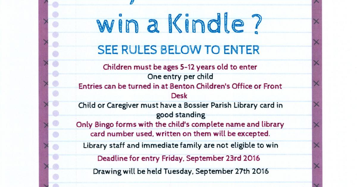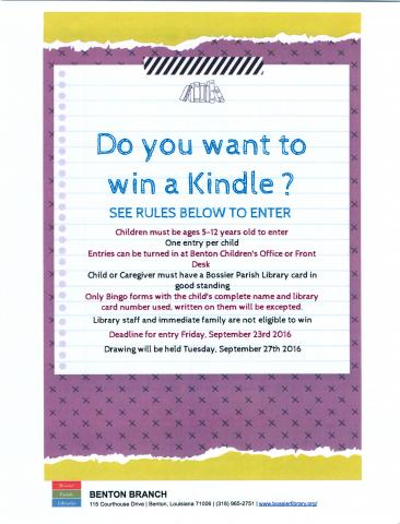This event is for kids ages 5-12. Bingo cards can be picked up at the Benton Library Branch.
