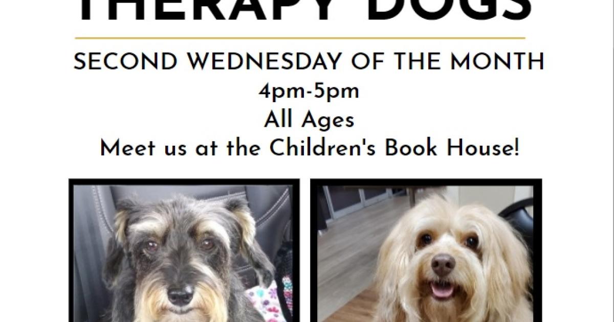 Mrs. Sandy's and friends therapy dogs are eager for children to come and read to them.