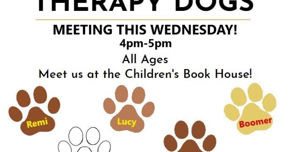 Mrs. Sandy and friends therapy dogs are eager for children to come and read to them.