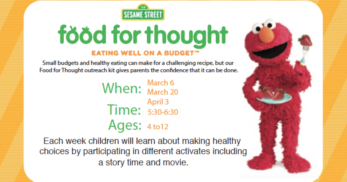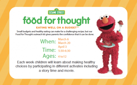 Come and learn how to make healthy food choices and prepare meals on a budget with the Sesame Street crew. For ages 4-12 in the Kids Zone.