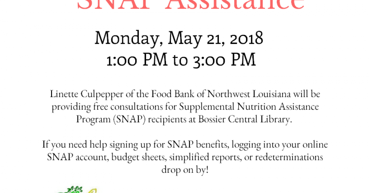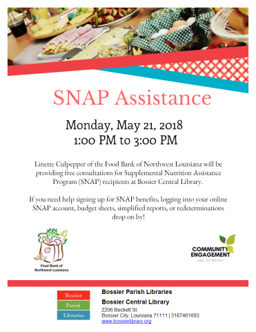 Linette Culpepper of the Food Bank of Northwest Louisiana will be providing free consultations for Supplemental Nutrition Assistance Program (SNAP) recipients at Bossier Central Library.