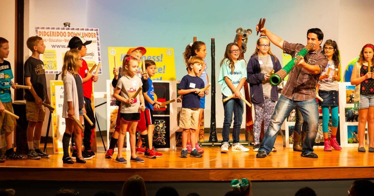 The Didgeridoo Down Under Show is an energetic fusion of Australian music, culture, art, science, comedy, character building, and audience participation. The didgeridoo instrument has been played by Aboriginal Australians for at least 1,500 years.