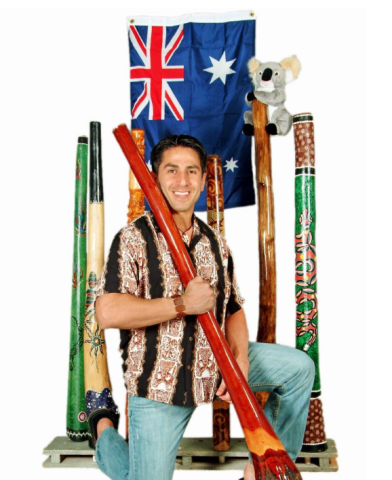The Digeridoo Down Under Show is an energetic fusion of Australian music, culture, art, science, comedy, character building, and audience participation. The didgeridoo instrument has been played by Aboriginal Australians for at least 1,500 years.