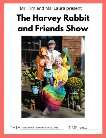 Mr. Tim and Ms. Laura, puppeteers present Harvey the Rabbit and Friends.