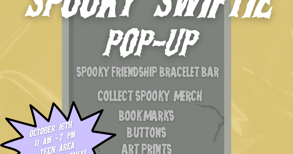Taylor Swift + Spooky Season = the best collab ever! Stop by the Central Teen area to grab your spooky swiftie merch and make a friendship bracelet! Swifties ages 12-18 only!