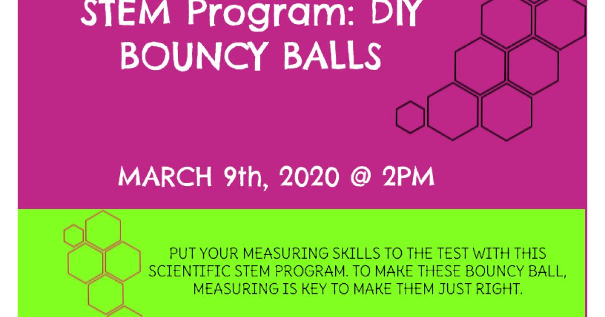 Put your measuring skills to the test with this scientific STEM program. To make these bouncy balls, measuring is key to make them just right. Registration is required 2 weeks before program date.