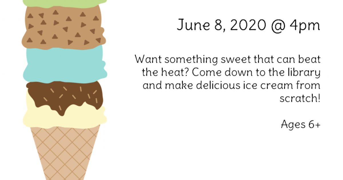 Want something sweet that can beat the heat? Come down to the library and make delicious ice cream from scratch. Registration is required 2 weeks before program date.