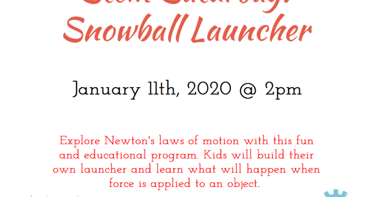 Explore Newton's law of motion with this fun and educational program. Kids will build their own launcher and learn what will happen when force is applied to an object. Registration is required 2 weeks before program date.