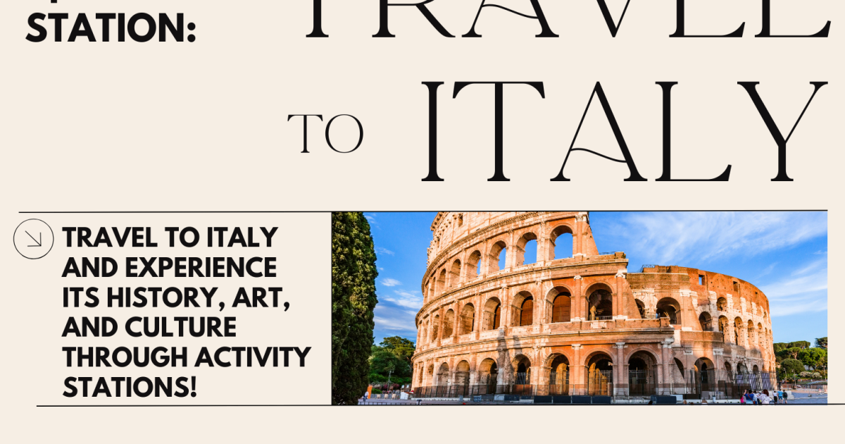 Travel to Italy and experience its history, art, and culture through our activity stations everyone can explore inside the East 80 Meeting Room from 10 a.m. to 4 p.m.