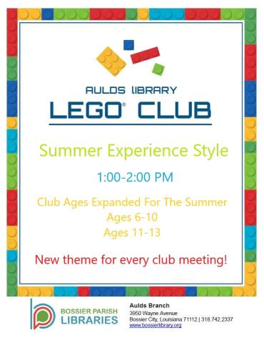 Ages for the Club expanded for the Summer, ages 6-10 yrs. and ages 11-13 yrs.