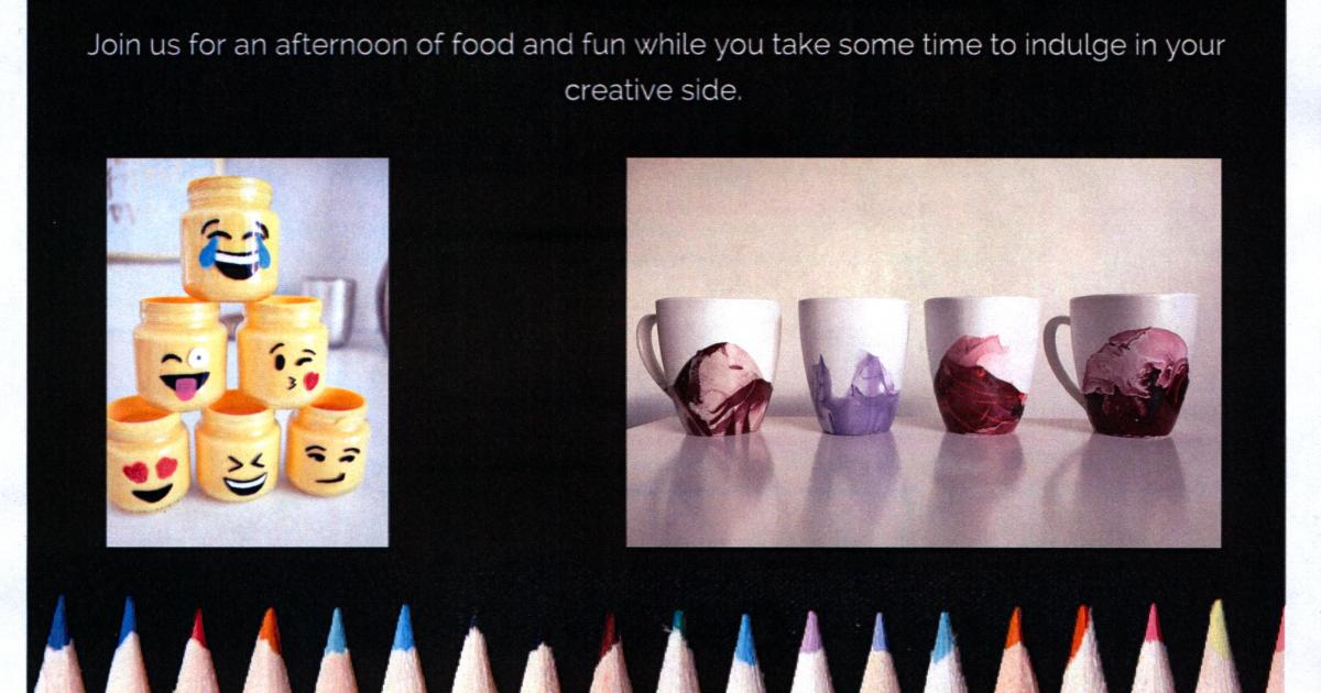 Join us for an afternoon of food and fun while you take time to indulge your creative side.