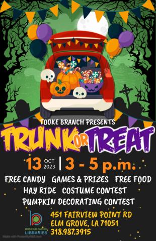 Trunk of vehicle will be decorated with decor and pass out candy and other goodies to the children in the community. This is a free event.