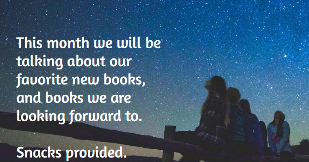 This month we will be talking about our favorite new book and books we are looking forward to. Snacks provided.
