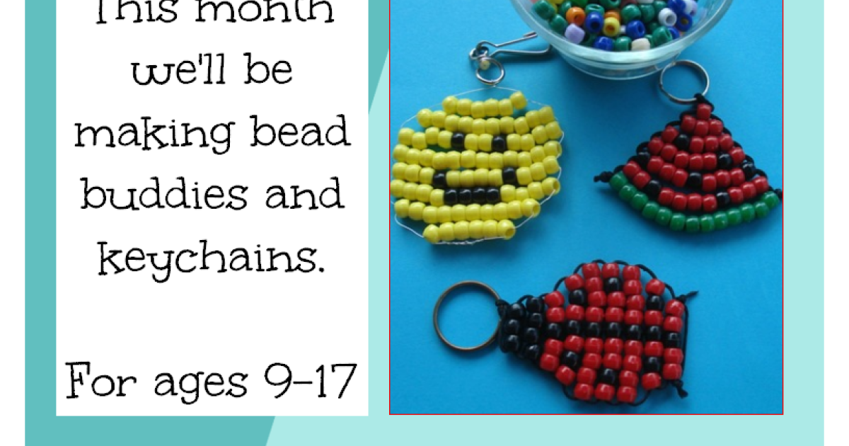 Join us as we make bead buddies and keychains! All teens and tweens (ages 9 to 17) are welcome.