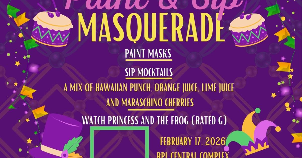 Tween Tuesday is back! Paint and Sip Masquerade, on Feb. 17 @4:00 PM in the Activity Room. Come paint your Mardi Gras masks for all the parades you’ll go to! We’ll also be sipping on mocktails while we watch, “Princess and the Frog”.